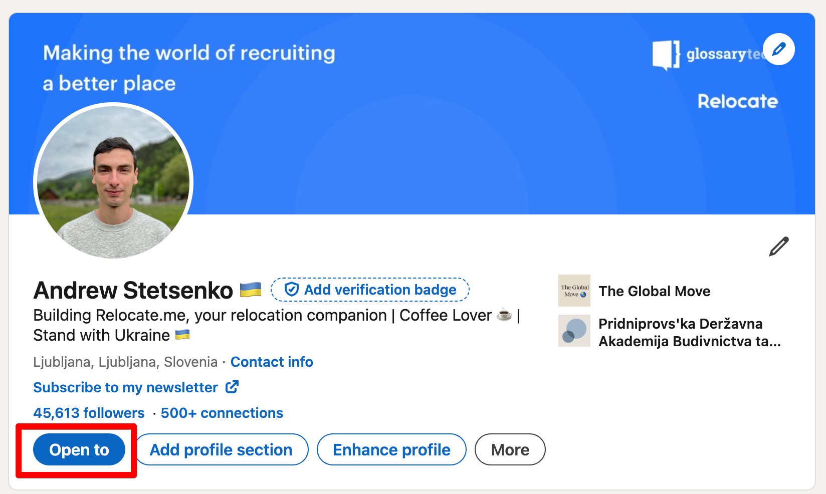 The best part is you don’t need the “Open to network” badge if you don’t want to show it to your network or current employer. This will only be seen by recruiters with a LinkedIn Recruiter or LinkedIn Recruiter Lite licence.